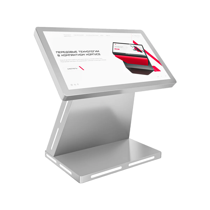 Данная модель предназначена для автоматизации отдельных процессов и информированности пользователей. Лаконичный современный дизайн интерактивного стола позволяет вписаться в любое пространство, а регулировка наклона столешницы обеспечивает комфортную работу с программным обеспечением. Благодаря мультитач-системе, любую информацию можно найти на экране в несколько касаний.