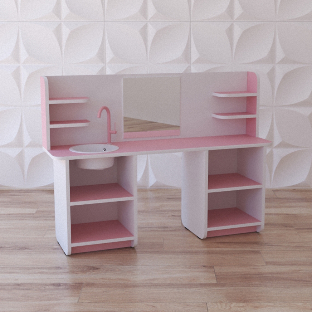 Игровое тематическое оборудование для сюжетно-ролевых игр “Самая-самая” предназначено для детей от 3 лет. своеобразное приспособление для сюжетно-ролевой игры; сам модуль даёт базовое понятие о том, что такое салон красоты как общественное учреждение, её функции и устройство системы, знакомит со связанными профессиями (парикмахер, визажист и т.д.), а использование его в сюжете игры помогает детям учиться налаживать зрительный и вербальный контакт, выстраивать ситуационный диалог, налаживает умение подготавливать необходимые игровые атрибуты и использовать их к месту и по своему назначению, и конечно же, учит заведомо вежливому обращению к товарищам по игре.