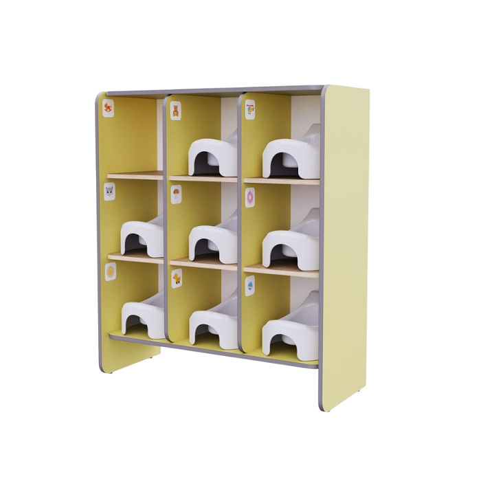 Это функциональное решение для организации пространства в группах детского сада. Стеллаж поможет поддерживать порядок и чистоту.