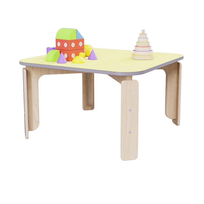 Квадратный растущий стол из коллекции «НЕГА» с плавными линиями обеспечивает безопасное перемещение детей для игровых зон малышей.