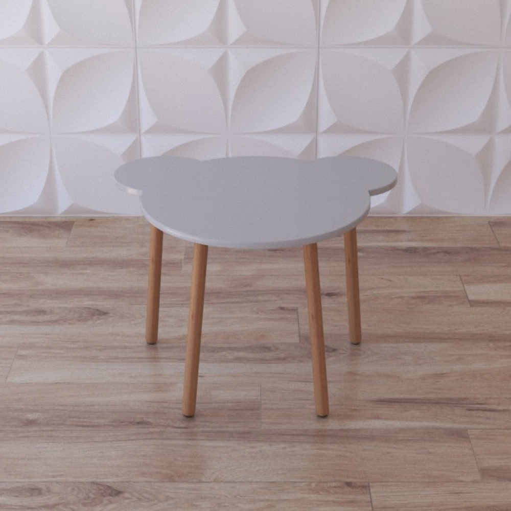 Детский деревянный стол “Мишенька” нужен для обустройства индивидуальными учебными местами групп в ДОУ, начальных школ и школ искусств. Исполнение конструкции простое, отличается оригинальной формой столешницы, силуэт которой наоминает голову медвежонка; цветовая гамма максимально приближена к натуральным природным оттенкам. Состоит из 4 ножек и столешницы. Группа из таких столиков не только обеспечит учебными местами учреждение, но и украсит его, придав интерьеру законченный вид благодаря универсальному виду каждого из элементов группы.