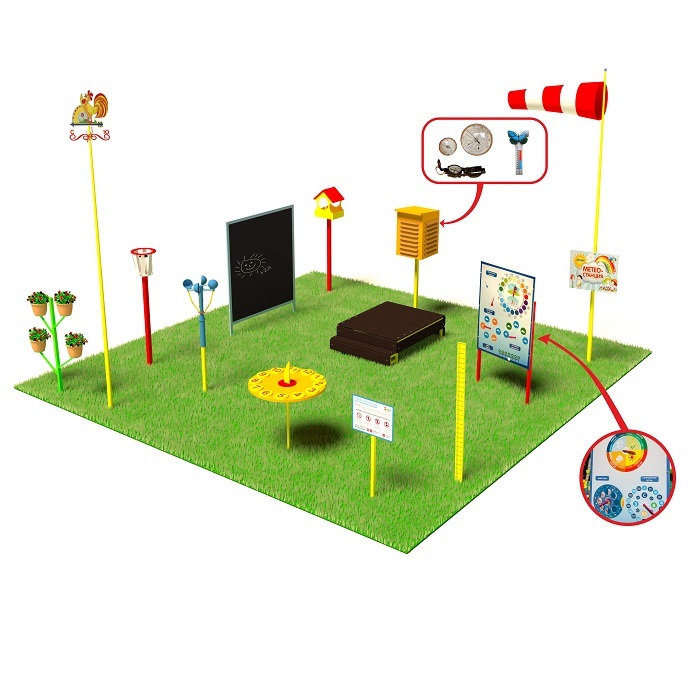 С помощью настоящей метеорологической станции малыши примеряют на себя роль юных синоптиков и проводут свои первые исследования. Дети в игровой форме смогут изучить основные природные явления, узнают, что такое погода, как она влияет на жизнь планеты Земля, животных, растений, человека, на практике знакомятся со всеми погодными проявлениями. Метеоплощадка воспитывает в детях любовь к окружающей среде и умение о ней заботиться! Развивает аналитическое мышление, логику, наблюдательность. Позволяет разнообразить образовательный процесс, сделать его более оригинальным и запоминающимся!