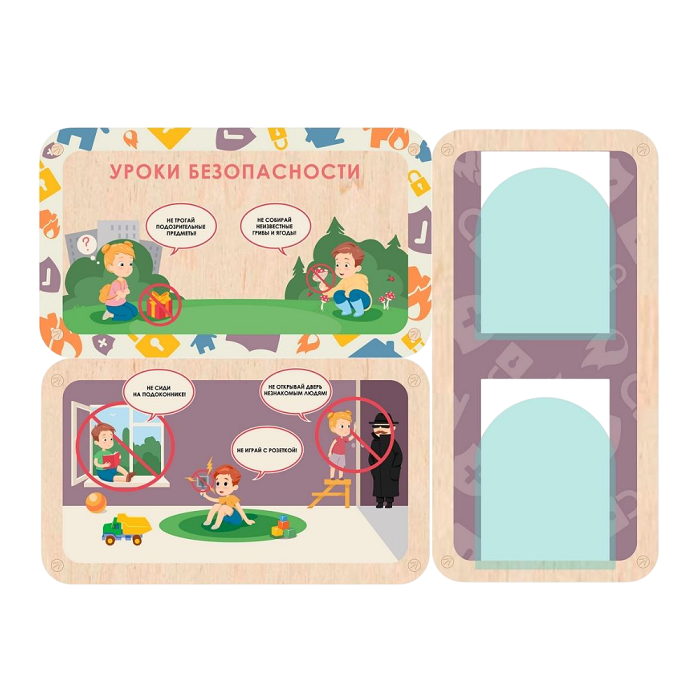 — Обучение и просвещение детей. Главная цель этих стендов - научить детей безопасному поведению в различных ситуациях. Они используют визуализацию и доступные объяснения, чтобы помочь ребёнку лучше понять и запомнить правила безопасности.