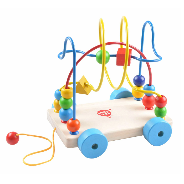 Разноцветные бусины разной формы можно легко двигать по интересному лабиринту. А если ребенок вдруг захочет поиграть в другом месте - не беда, ведь у лабиринта есть удобные колёсики и верёвочка, а значит, его можно возить с собой куда угодно! Игра способствует развитию логики, воображения, пространственного мышления, развивает координацию, внимание и учит различать цвета и формы.