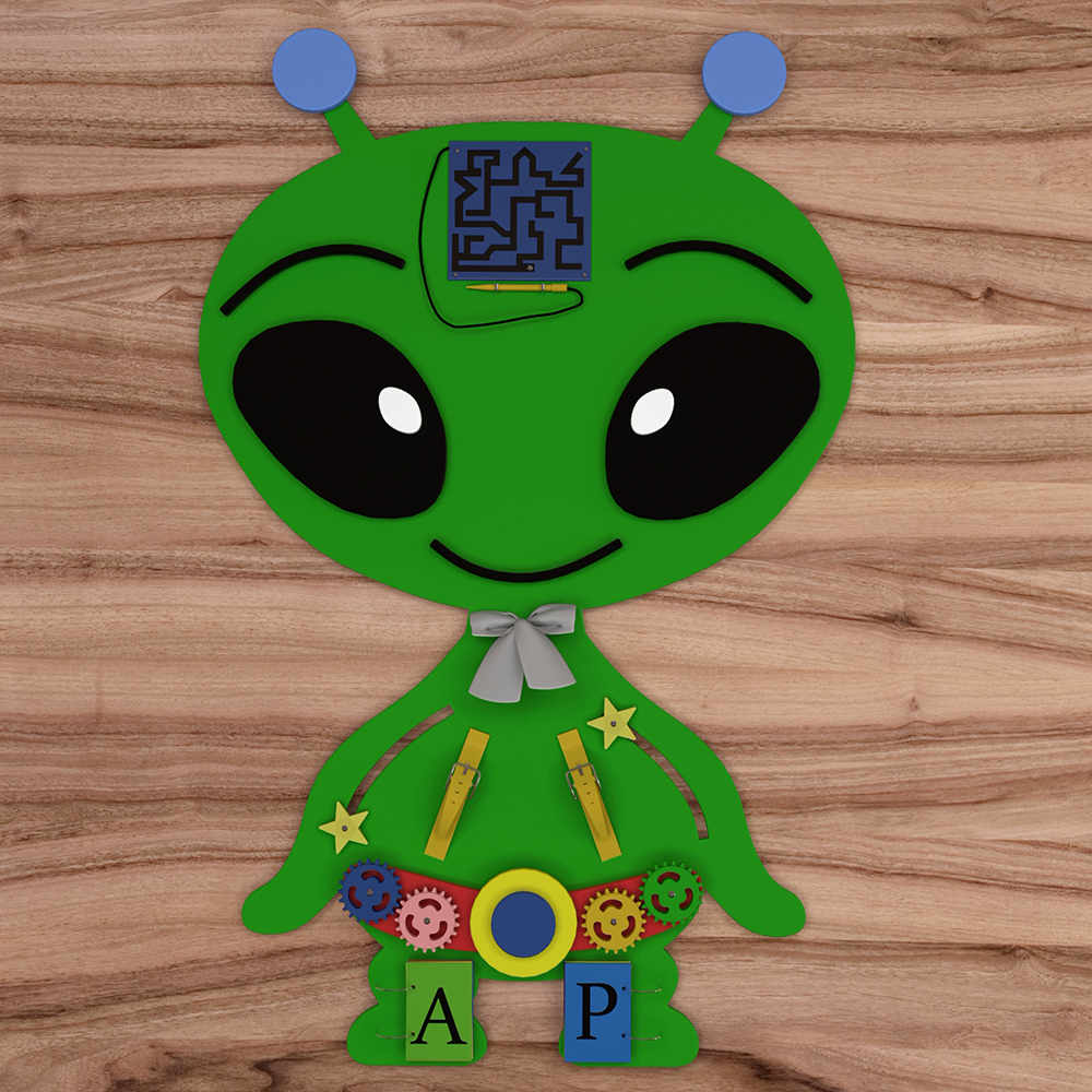 Бизиборд «Разумный пришелец» украсит любую детскую комнату, развивает моторику, концентрацию внимания, мышление, память ребенка и не только. Благодаря приятному цвету и задорной улыбке пришельца, которая привлекает внимание ребенка почти сразу, малыш готов погрузиться в увлекательную игру с новым другом.